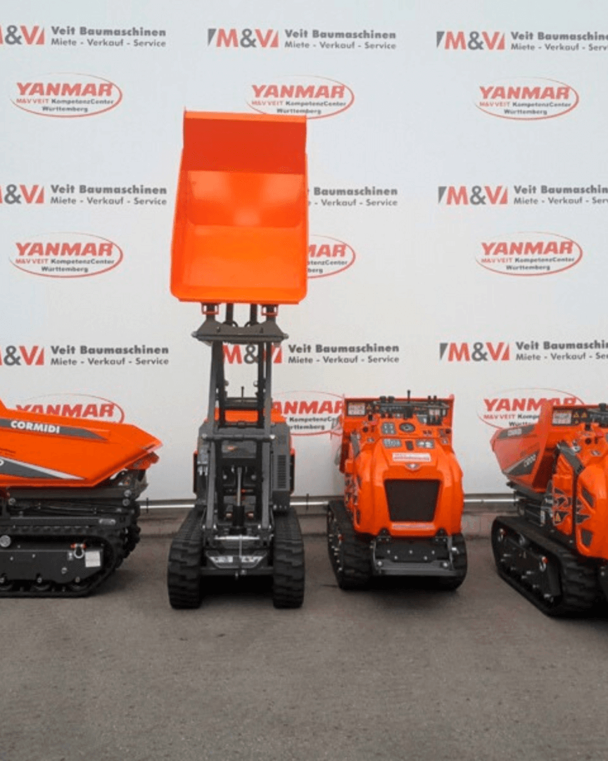 Hier werden gerade 5 Cormidi C1200 HI Dumper an einen Kunden in der Region ausgeliefert.Dieser Hochkipper verfügt über den effizienten Kubota Diesel Motor D1105, der eine beeindruckende Leistung von 18,5 kW aufweist und somit zugleich effektiv und spritsparend ist.????