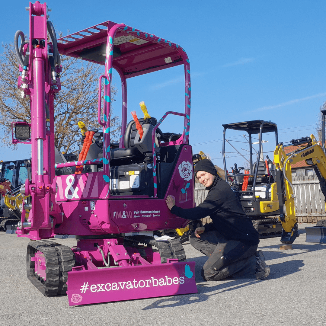 Unsere Auszubildende Verena verleiht unserem pinken Bagger pünktlich zum Weltfrauentag den letzten Schliff.