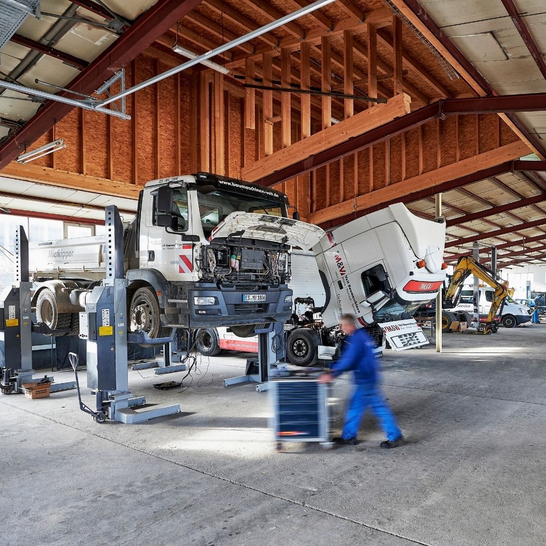 In unserer Werkstatt ist immer reger Betrieb, um Ihre Baumaschine schnell wieder einsatzbereit zu machen. Dank unseres hauseigenen Ersatzteillagers, können Reparaturen direkt vorgenommen werden, ohne dass auf die Ersatzteillieferungen gewartet werden muss.