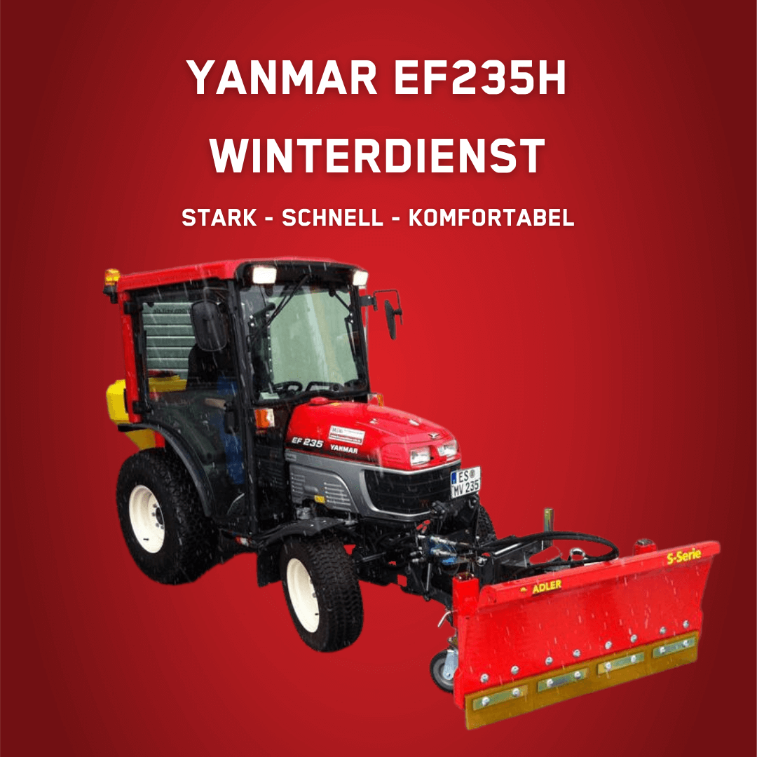 Bei diesen Witterungsverhältnissen ist es gut, wenn man die passende Ausstattung hat. Mit unserer Yanmar EF235H erledigen Sie den Winterdienst im Handumdrehen. Vorne am Kleintraktor befindet sich eine Schaufel zum Schneeschippen. An der Rückseite ist ein Behälter mit Streusalz befestigt. Gerade große Firmengelände können hiermit schnell und einfach verkehrssicher gemacht werden.