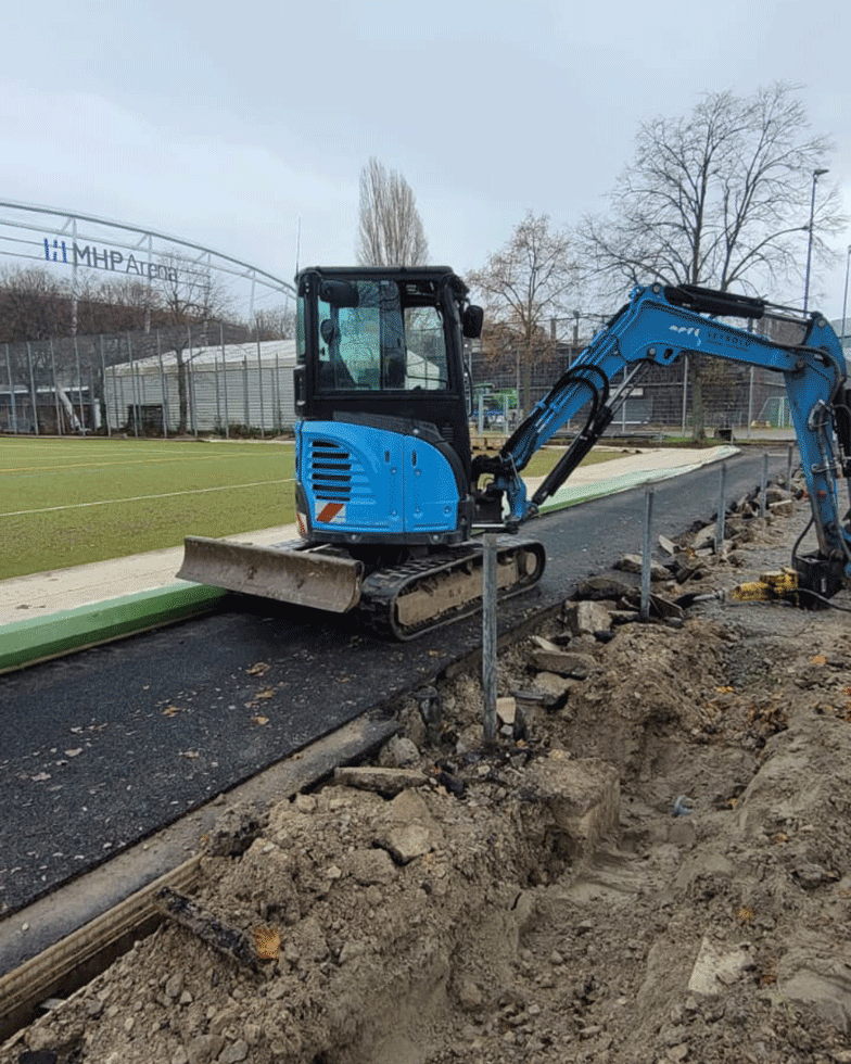 Der Yanmar ViO33-6 ist als Nullheck-Bagger besonders für beengte Verhältnisse geeignet. Dabei überzeugt er nicht nur durch Sicherheit und Ergonomie, vor allem die Leistung kann sich sehen lassen! Damit die Leistung beim VFB Stuttgart weiterhin bestehen bleibt, unterstützt der Yanmar ViO33-6 bei der Sanierung vom Sportplatz der Stuttgarter an der MHP Arena!