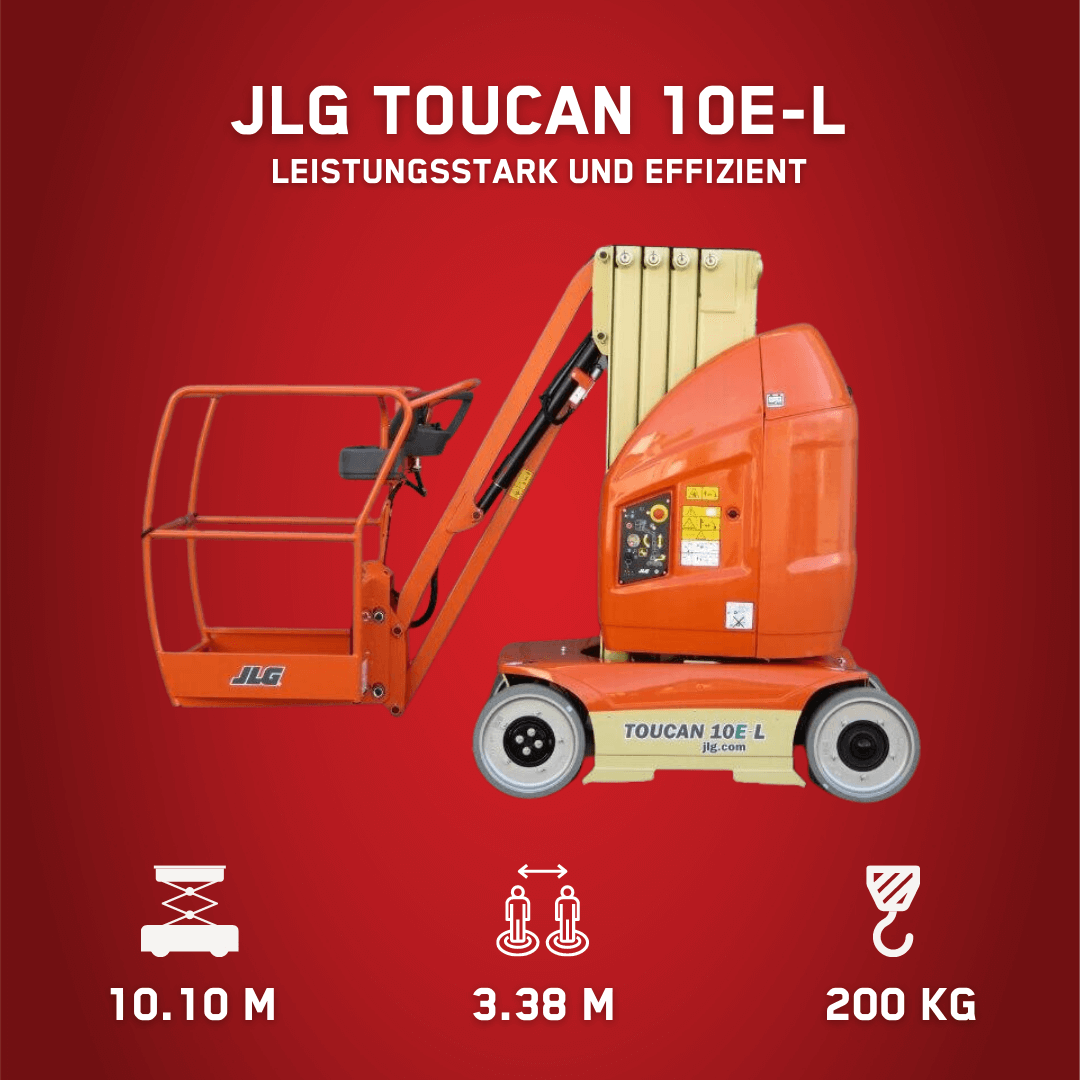 Unsere JGL Toucan 10E-L Vertikalmastarbeitsbühne ist leistungsstark und arbeitet durch ihren emissionsfreien Elektroantrieb effizient. Mit dieser Arbeitsbühne gelingt Ihnen ein nahezu geräuschloses Arbeiten. Durch die kompakten Abmessungen und dem präzisen Steuerungssystem erreichen Sie mehr Stellen als bei gewöhnlichen Maschinen. Mit der JGL Toucan 10E-L können sie auf 10 Metern arbeiten und profitieren Sie von einer Arbeitsreichweite von 3.38 Metern.
