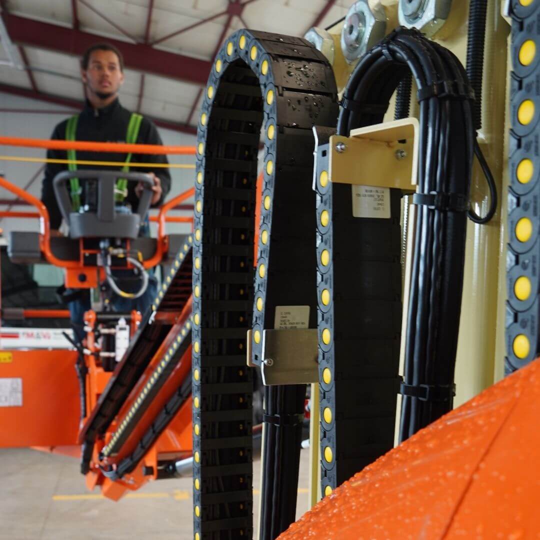 Dank der kompakten Abmessungen erreichen Sie mit der JLG Toucan 12E Plus noch so schwer erreichbare Stellen. Die Korbdrehfunktion kombiniert mit der Drehung des Hubmastes bis zu 345° erlaubt flexibles und effizientes Arbeiten, bei einer Arbeitshöhe bis zu 12,65 m.
