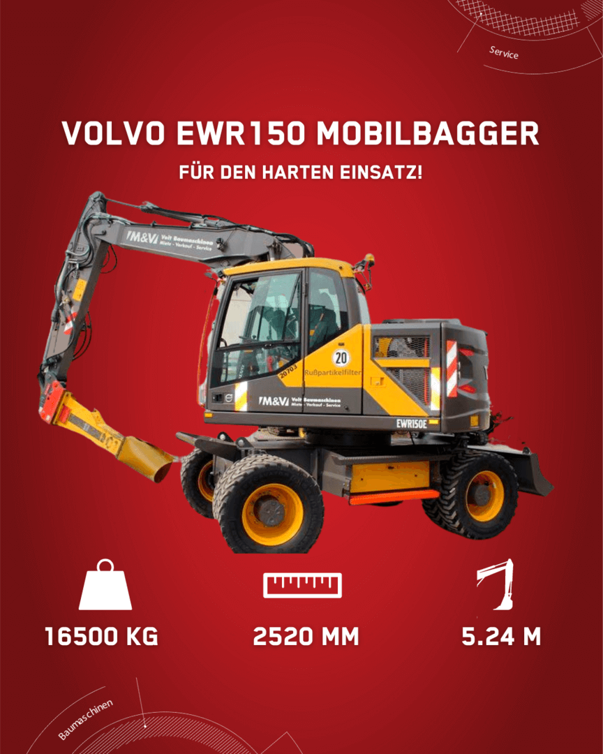 Mehr zum EWR150E Mobilbagger: https://www.baumaschinen-veit.de/vermietung/baumaschinen/bagger/details/volvo-ewr150-mobilbagger.html