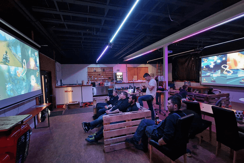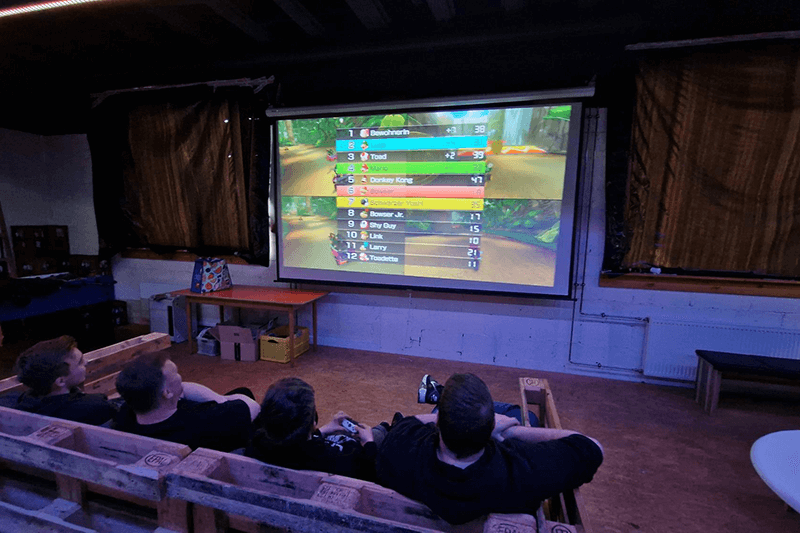 Bei dieser Mitarbeiterveranstaltung spielten wir zusammen Mario Kart 8 an unseren 2 neuen großen Leinwänden.