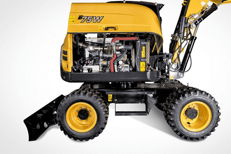 Der moderne Yanmar 4TNV98CT Vierzylinder-Turbodieselmotor unseres B75W Mobilbaggers, von welchem andere Baumaschinen nur träumen können, vereint Umweltfreundlichkeit, Kraftstoffeffizienz und Leistungsstärke in sich. Das macht ihn zur optimalen Maschine für besonders komplizierte Baustellen. Zusätzlich ist unser Bagger standardmäßig mit DPF und AGR ausgestattet. Dadurch erfüllt er sogar die hohen EU-Emissionsgrenzwerte der Stufe V! Als wäre das nicht schon genug, können Sie unseren Yanmar Mobilbagger noch mit der optionalen Fahrautomatik bekommen. Diese passt sich automatisch an den Bremsdruck an, wodurch jeder Bediener eine erstklassige Kontrolle über die Maschine bekommt.