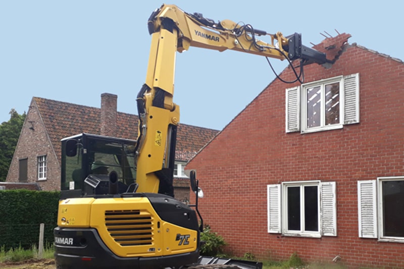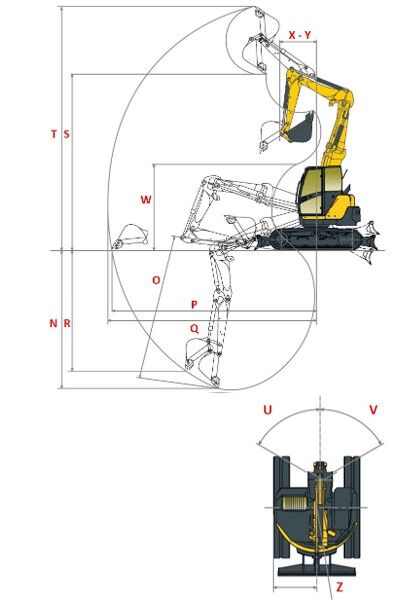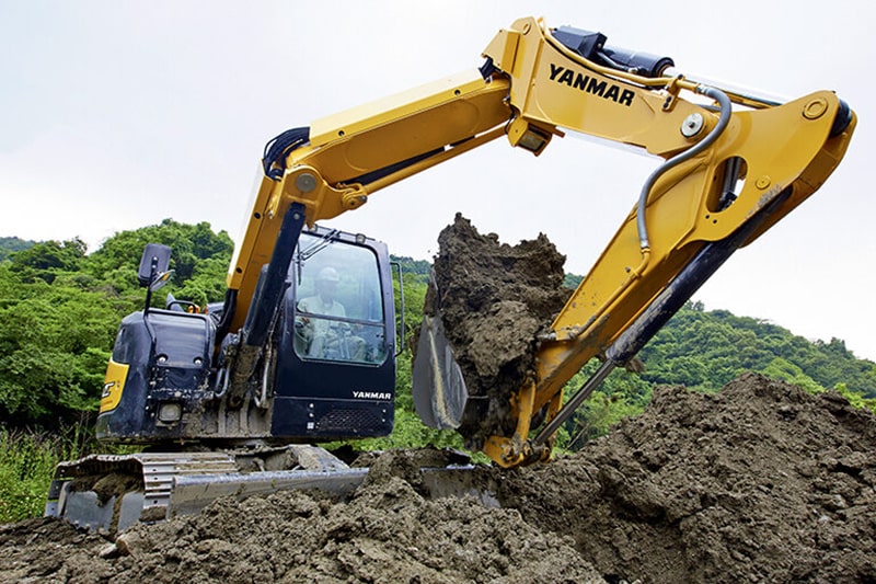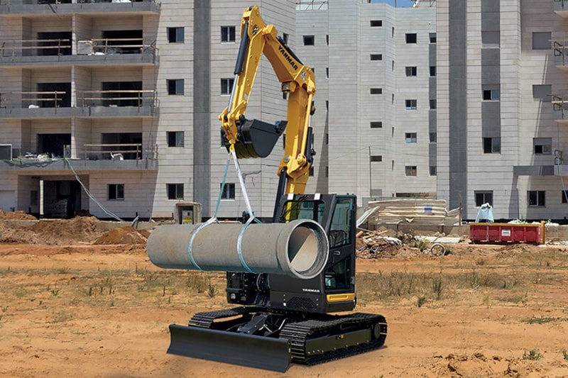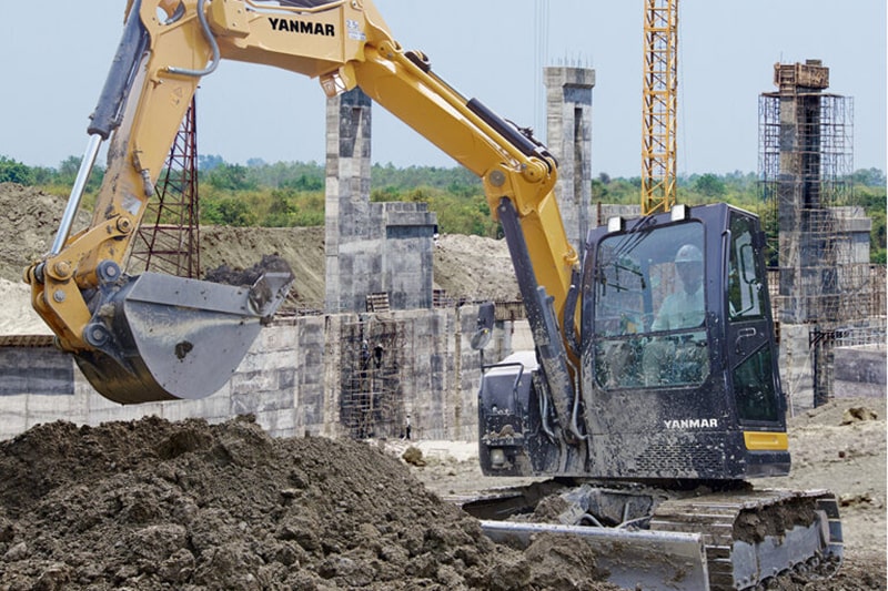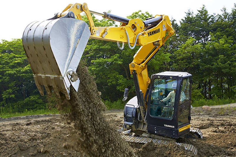Der Sigma-Ausleger von Yanmar ist ein dreiteiliger Verstellausleger mit einem extrem geringen Schwenkradius, erhöhter Hubleistung und optimaler Einsicht in den Arbeitsbereich. Er glänzt mit weiteren Vorteilen: eine für seine Klasse außergewöhnliche Schütt- und Abtraghöhe in Kombination mit einer beachtlichen Grabtiefe. Bei Arbeiten in engen Gräben mit versetztem Ausleger stößt der zweite Teil des Auslegers nicht gegen die linke Schalung – im Gegensatz zu herkömmlichen Baggern .