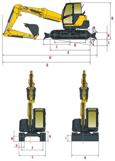 Extrem enge Drehungen, außergewöhnliche Flexibilität und unübertroffene Kompaktheit machen diese Maschine zur richtigen Wahl für Arbeiten auf städtischen Baustellen mit begrenztem Platz. Der einzigartige dreiteilige Ausleger bietet eine für seine Klasse außerordentliche Schütt- und Abtraghöhe sowie eine exzellente Stabilität. Der leistungsstarke 53,5-kW-TNV-Motor mit elektronischer Steuerung glänzt durch eine hohe Leistung bei geringem Kraftstoffverbrauch. Die Fahrer profitieren außerdem von einer geräumigen, ergonomischen Kabine mit zahlreichen serienmäßigen Komfortdetails.