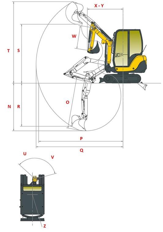 | P | Max. Grabreichweite am Boden | 3530 - 3725 * mm |
