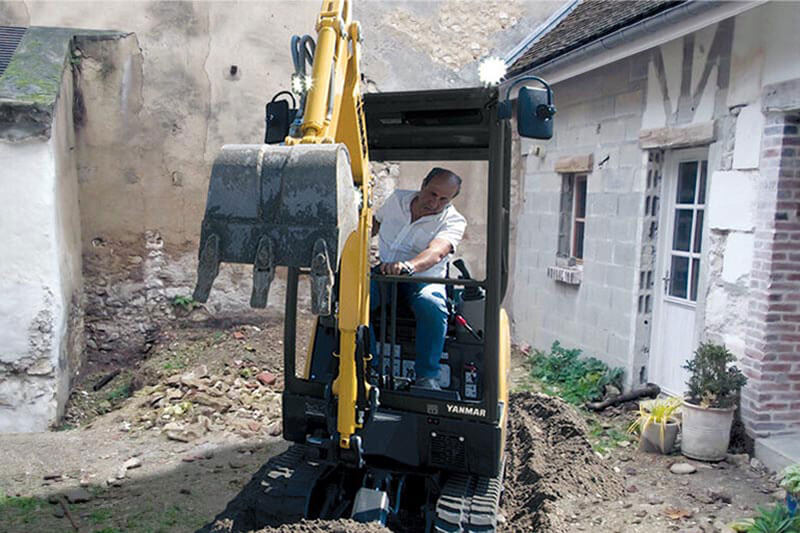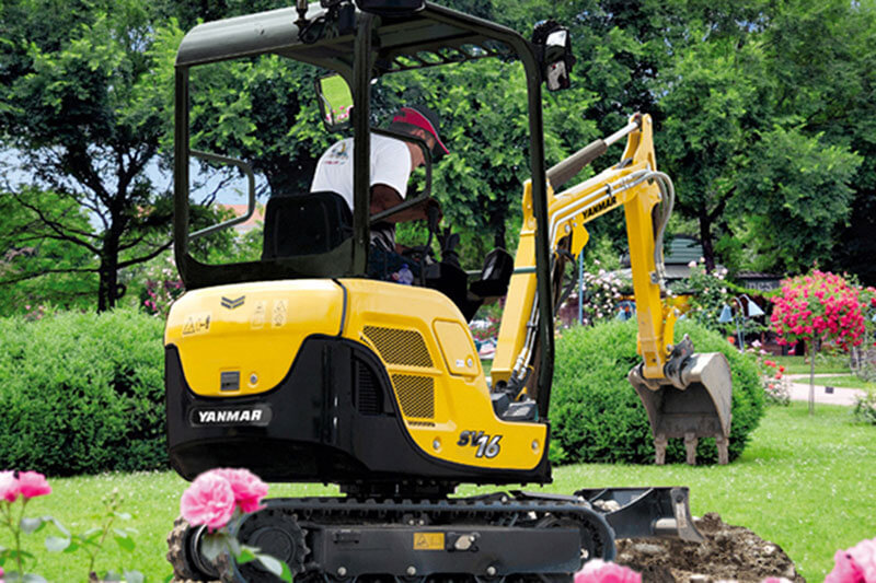 Der SV16 ist mit allen erforderlichen Anbaugeräten erhältlich – für eine hohe Leistungsfähigkeit, insbesondere bei Arbeiten auf städtischen Baustellen und im Landschaftsbau. Dieser Minibagger hebt sich durch seine Leistung in seiner Klasse ab. Ein großes Gegengewicht schützt vor Stößen und Anschlägen an Mauern. Darüber hinaus bieten das einfache Zahnradpumpensystem und der leistungsstarke und dennoch leise Yanmar-Motor ein ausgewogenes Verhältnis zwischen Einfachheit, Kosteneffizienz, zuverlässiger Leistung und geringem Kraftstoffverbrauch.