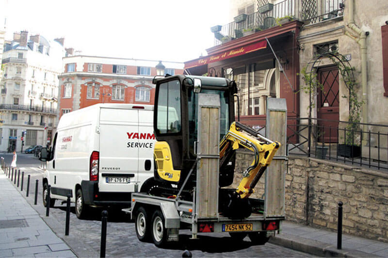 Mit einer Breite von unter einem Meter und einem minimalen Überhang könnte der SV16 Minibagger kaum kompakter sein. Er eignet sich optimal für den Einsatz auf engem Raum. Durch die Kombination aus Kraft, Handlichkeit und Stabilität lassen sich jegliche Aufgaben einfach und effektiv erledigen. Mit einem Transportgewicht von nur 1.515 kg (Ausführung mit Schutzdach) und einem sehr kompakten Unterwagen lässt er sich inklusive Zubehör einfach auf einem Anhänger transportieren. Dies wirkt sich positiv auf die Produktivität der Maschine aus.