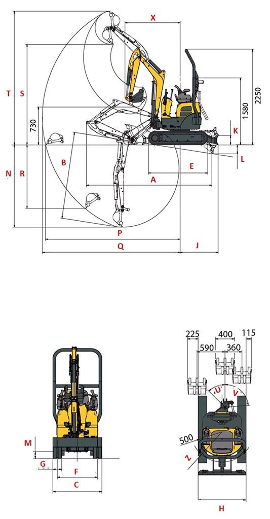 | N | Max. Grabtiefe – bei angehobenem Planierschild | 1950 mm |