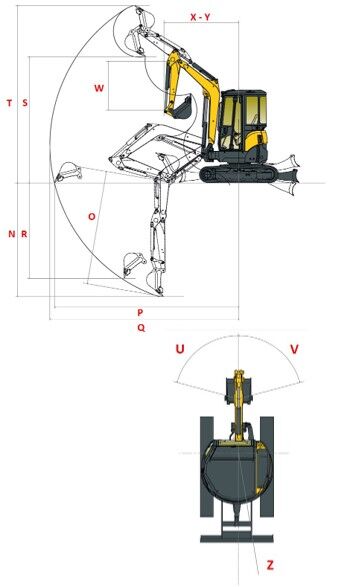 | P | Max. Grabreichweite am Boden | 4020 / 4220 mm |