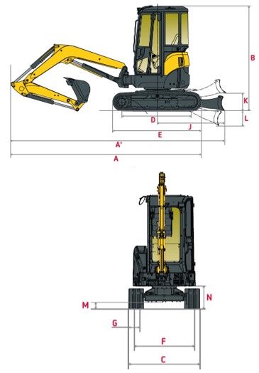 | D | Länge der Laufketten am Boden | 1470 mm |
