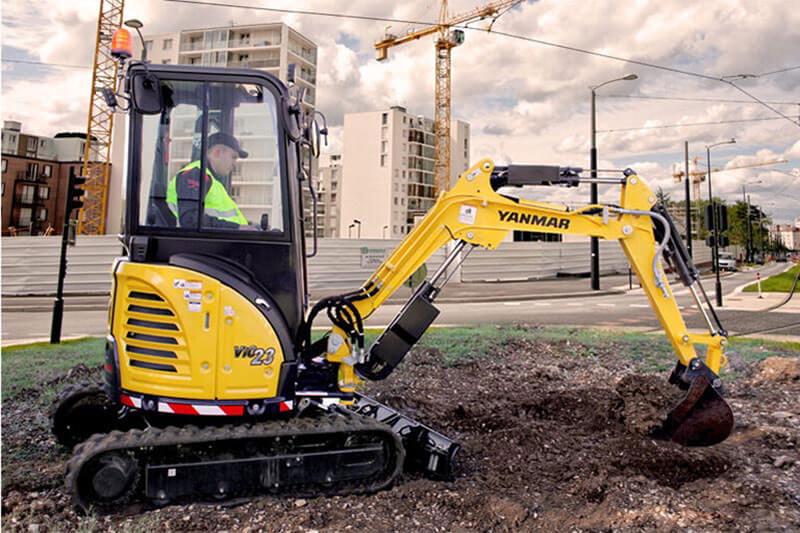 Der ViO23-6 ist ein Minibagger, der auf engem Raum eingesetzt werden kann und sich somit optimal für städtische Baustellen eignet. Als echter Zero-Tail-Swing-Minibagger bleibt sein Schwenkradius für maximale Sicherheit stets innerhalb der Spurbreite der Ketten. Auch der tote Winkel am Heck wurde auf ein Minimum reduziert. Dadurch ist es möglich, effizient entlang von Absperrungen zu arbeiten, ohne die Sicherheit der Menschen in der Umgebung zu gefährden.