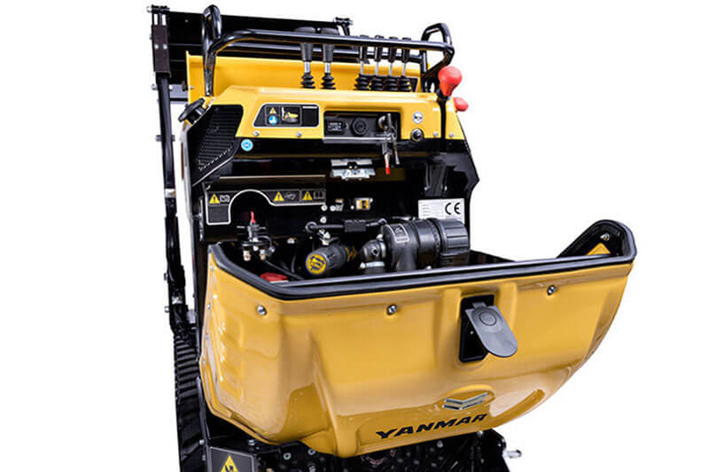 Tägliche Wartungsprüfungen an Ihrem Raupentransporter sparen auf lange Sicht Geld. Daher hat Yanmar sie einfach gemacht. Die wichtigsten Motorkomponenten sowie Wasser, Öl und Filter sind durch die große Motorhaubenöffnung leicht zugänglich. Über das äußerst benutzerfreundliche und intuitive Dashboard können Sie jederzeit schnell den Status prüfen – dies steigert die Effizienz und Sicherheit auf der Baustelle.