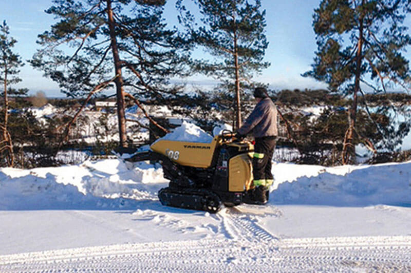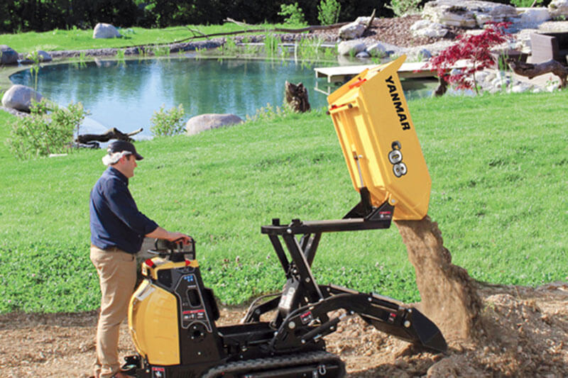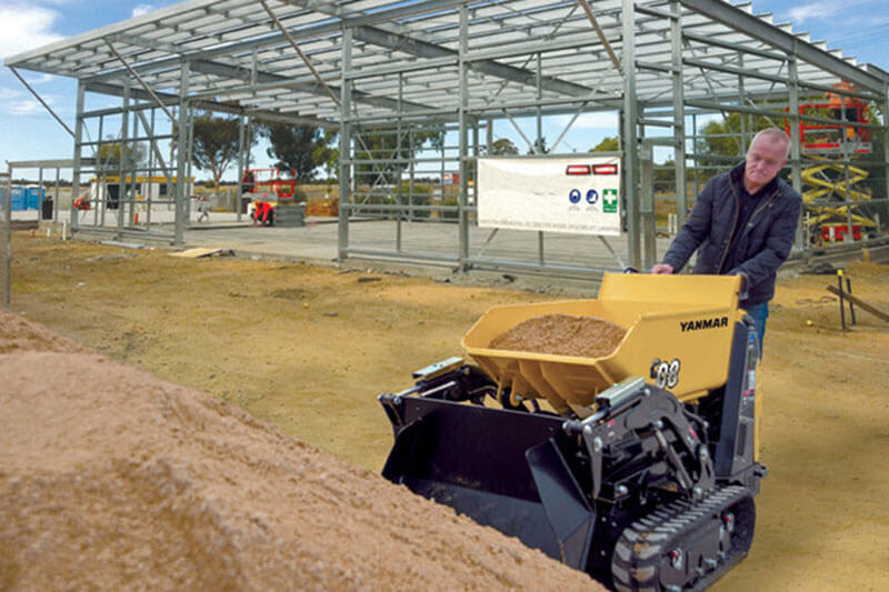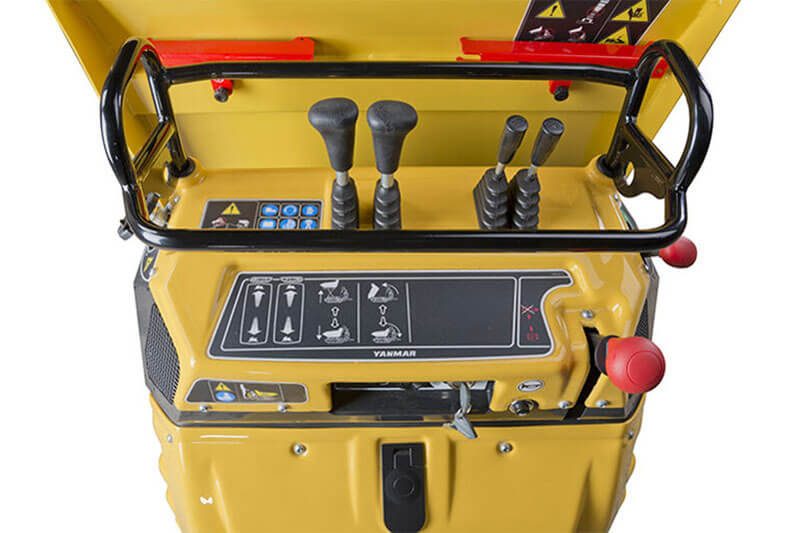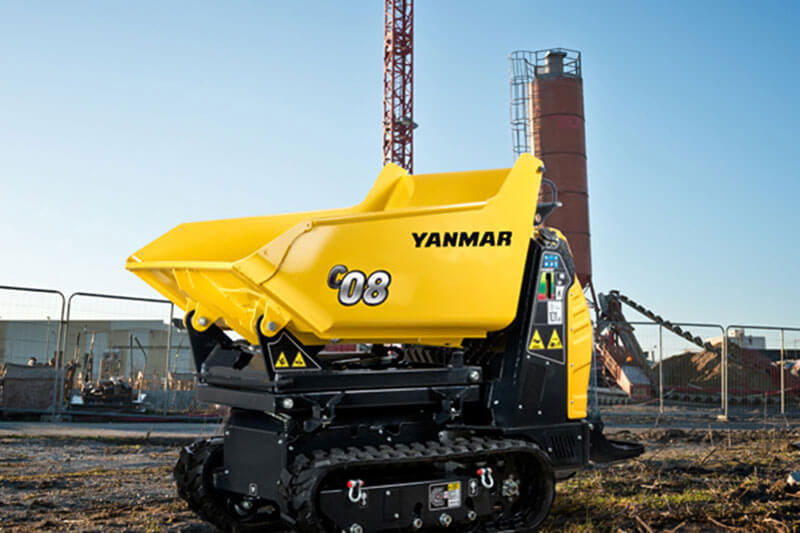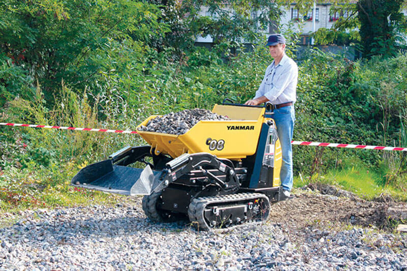 Mit seinen beeindruckend kompakten Maßen eignet sich der Yanmar C08 Power Raupentransporter optimal für den Einsatz auf engem Raum – etwa in Gärten, zum Befüllen von Schuttcontainern und sogar in Innenbereichen. Dank seines kleinen Wendekreises lässt er sich sehr gut manövrieren; außerdem bietet der C08 Minidumper eine beeindruckende Leistung. Die oszillierenden Rollen ermöglichen es, unwegsames Gelände mit Lasten bis 800 kg zu befahren.