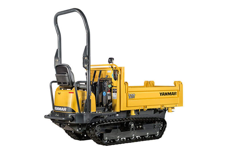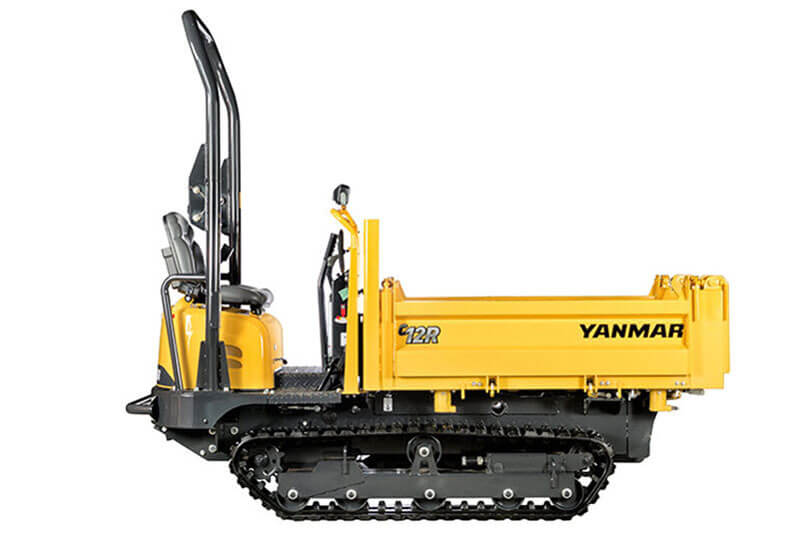 Der C12R-C Raupentransporter setzt die Reihe der kompakten Baumaschinen von Yanmar fort und stellt effizientes Arbeiten sicher. Mit einer Tragkraft von 990 kg übersteigt er sogar deutlich sein Eigengewicht – und das bei einer Breite von nur 960 mm und einer Länge von 2.650 mm. Mit einem Wendekreis von nur 2.650 mm kann die Maschine auf engem Raum eingesetzt werden und meistert sogar Hänge mit bis zu 30 Grad Steigung.