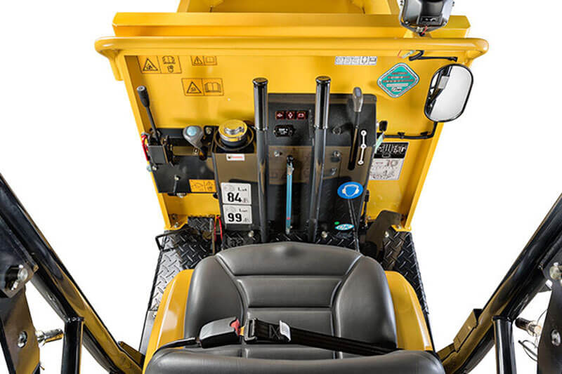 Bei Yanmar steht immer der Bediener im Vordergrund; die sichere Bedienung jeder Maschine ist für Yanmar ein absolutes Muss. Ein Bügel an der Mulde, ein Sicherheitsgurt und Mehrscheibenbremsen im Ölbad sorgen für Zuverlässigkeit und Haltbarkeit. Ein Rückfahralarm schützt den Bediener; der Kipphebel wird während der Fahrt verriegelt.