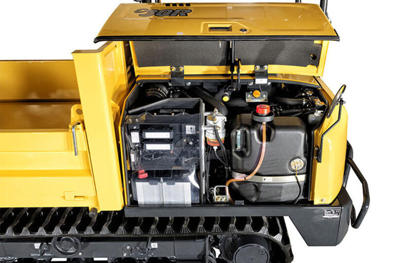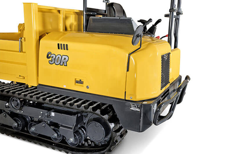 Der C30R-3 punktet als kompakter Transporter mit beachtlicher Leistung. Die auf drei Seiten kippbare Mulde besitzt eine Nutzlast von 2.500 kg. Die Maschine ist nur 1.550 mm breit und damit auch auf engen Baustellen einsetzbar. Ein Kotflügel schützt die Hydraulikkomponenten vor herabfallendem Material, ein Joystick sorgt für eine präzise Steuerung der Maschine.