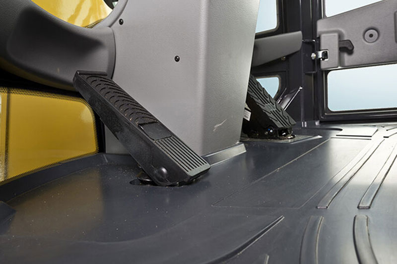 Indem Sie den Radlader verlangsamen und gleichzeitig die Motordrehzahl hochhalten, verbessern Sie bei Grab- und Ladevorgänge die Zykluszeit. Diese Feinabstimmung der Hydraulikleistung erreichen Sie mit dem Brems-/Inchpedal. Dies verhindert auch ein Durchdrehen der Räder und übermäßigen Reifenverschleiß.