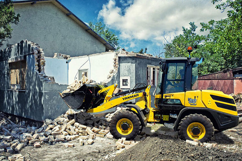 Yanmar ist weltweit für seine kompakten Maschinen in allen Klassen bekannt. Diese Tradition setzt sich auch beim V80 fort. Er ist nur 2.640 mm hoch, 1.740 mm breit und 5.060 mm lang, die Schaufel hat einen Wenderadius von nur 4.160 mm. Diese kompakten Abmessungen machen den V80 zu einem idealen Radlader für enge städtische Baustellen. Auch die Fahrten zur nächsten Baustelle werden einfacher.