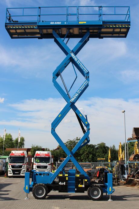 Bei M&V Veit Baumaschinen können Sie Scherenarbeitsbühnen mieten, sowie kaufen.