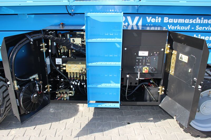 Einfache Wartung. Ein integriertes Diagnosesystem ermöglicht es Bedienern, Fehler schnell zu erkennen und erforderliche Anpassungen noch während des Einsatzes vorzunehmen – und maximiert dadurch die Betriebsbereitschaft. Darüber hinaus gewährt der ausziehbare Motor den mühelosen Zugang zu den Bauteilen im Inneren der Maschine. Viele Komponenten und Wartungsabläufe sind für die gesamte Baureihe der Genie® Scherenarbeitsbühnen vereinheitlicht – das spart Kosten für die Lagerhaltung und steigert die Wartungseffizienz.