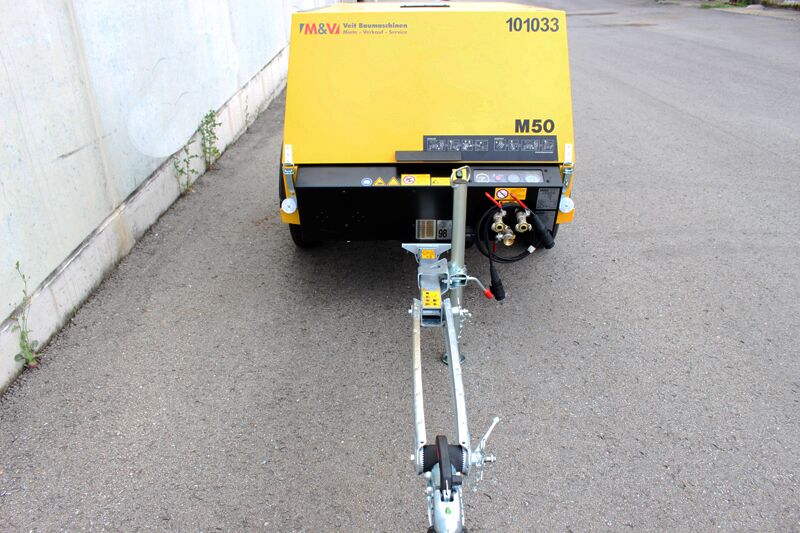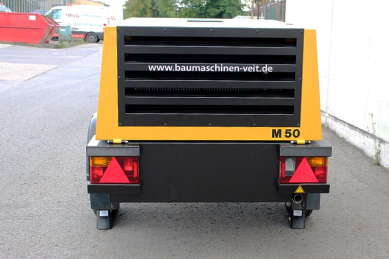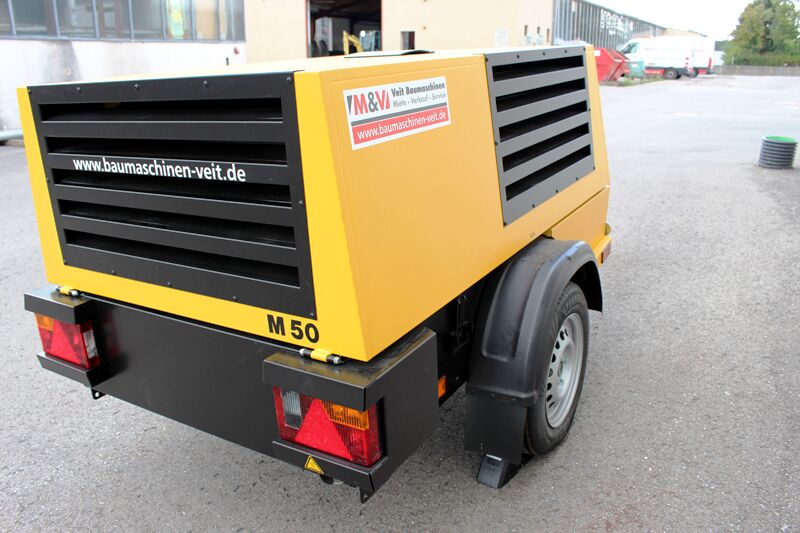 Exzellente Performance, der M 50 dank dem energiesparenden langsam drehenden Schraubenkompressorblock mit Sigma Profil. Übertragungsverlustfrei per 1:1- Direktantrieb des wassergekühlten Vierzylinder Dieselmotor. Typische Einsatzgebiete sind Drucklufthämmer oder Erdraketen. Betrieb möglich bei Temperaturen zwischen - 10 und + 50 ° C.