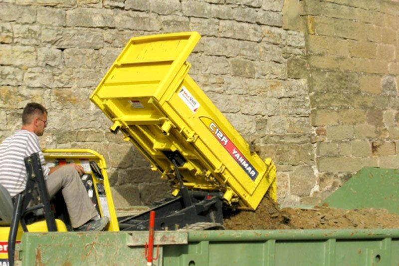 Der Yanmar C 12R-B ist ein Raupendumper in besonders kompakter und niedriger Bauweise. So ist der Einsatz an beengten Baustellen möglich. Auch kann dieser Raupendumper mit einem Anhänger transportiert werden.