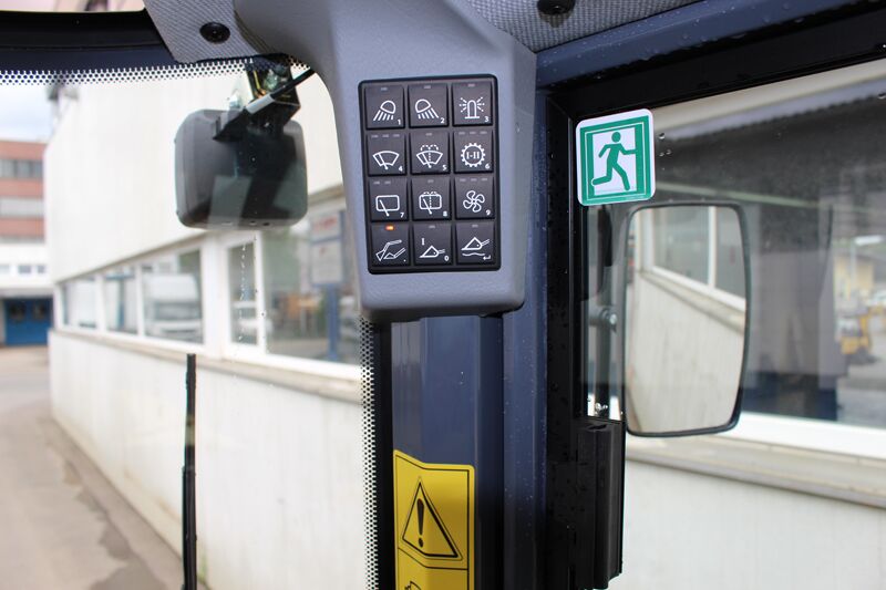 Die Kabine ist die Schaltzentrale des Yanmar V120 Stage 5. Von hier aus steuert der Fahrer die gesamte Maschine. Dank der "Fingertip"-Steuerung von Yanmar braucht er für die meisten Arbeiten im wahrsten Sine des Wortes nur einen Finger krumm zu machen. Alle wichtigen Einstellungen lassen sich nämlich über den Joystick und das elektronische Bedienelement vornehmen. Damit der Maschinenführer trotzdem immer weiß, was um ihn herum passiert, ist die Kabine vollverglast für beste Rundumsicht.