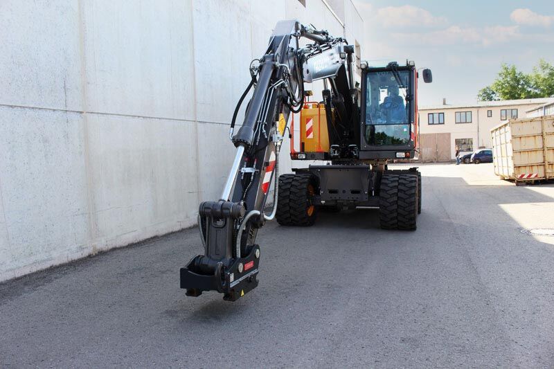 Bei aller Kompaktheit ist der Volvo EWR130E OQ65 doch einer der effizientesten Mobilbagger, den Sie bei uns mieten können. Sein geräumiger Löffel mit einem Volumen von 0,73 m3 erlaubt schnelle Grabfortschritte. Sie brauchen keinen Löffel? Dann tauschen Sie ihn einfach gegen ein Anbaugerät. Dank des unkomplizierten Schnellwechslers OilQuick OQ65 ist dies überhaupt nicht schwer. Aber ganz egal welches Anbauteil Sie verwenden, dank des integrierten Managementsystems für Anbaugeräte können Sie ohne Hilfe Druck und Durchfluss kinderleicht selbst programmieren und die Einstellungen für's nächste Mal speichern.