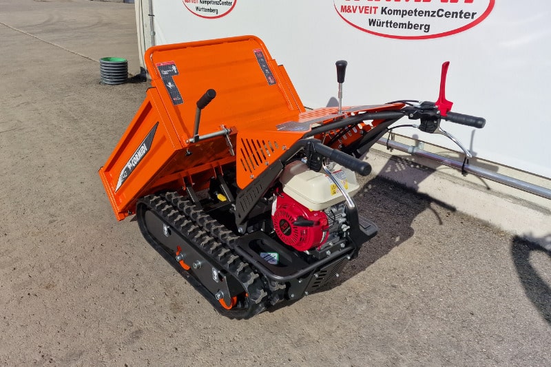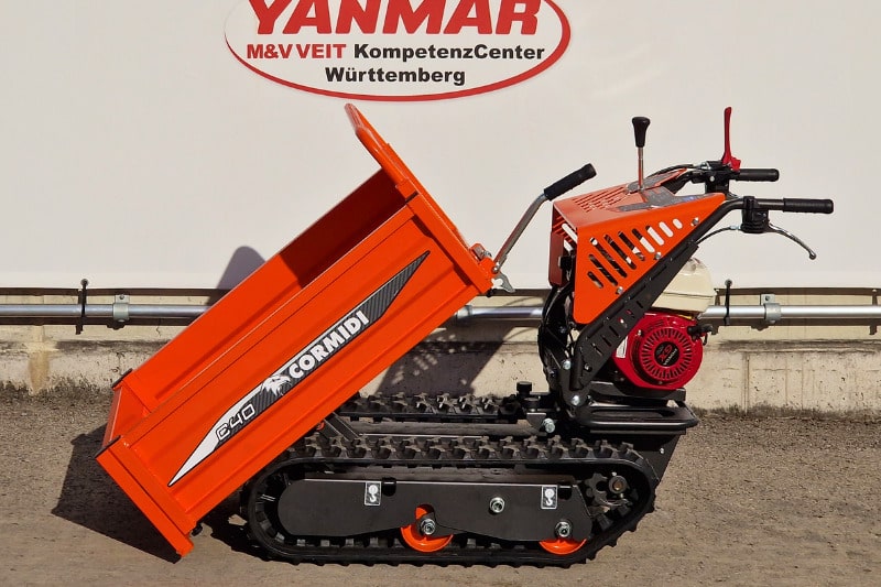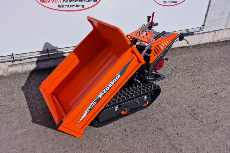 Der Comini C40 ist ein kompakter mechanischer Dumper für Lasten bis zu 400 kg. Sein zuverlässiger und robuster Honda-Motor sorgt für einen stetigen Antrieb des Fahrwerks und entlastet somit den Anwender beim Transport von Schüttgut und Baustoffen. Die Möglichkeit der flexiblen Anpassung der landwirtschaftlichen Pritsche und seine hervorragende Geländegängigkeit machen den C40 zu einer universellen Maschine, die im Gartenbau oder der Landwirtschaft genauso unentbehrlich ist, wie auf einer Baustelle oder dem Bauhof Ihrer Kommune. Wie alle Dumper von Cormidi besticht der C40 durch seine Zuverlässigkeit, auch unter schwierigsten Bedingungen.
