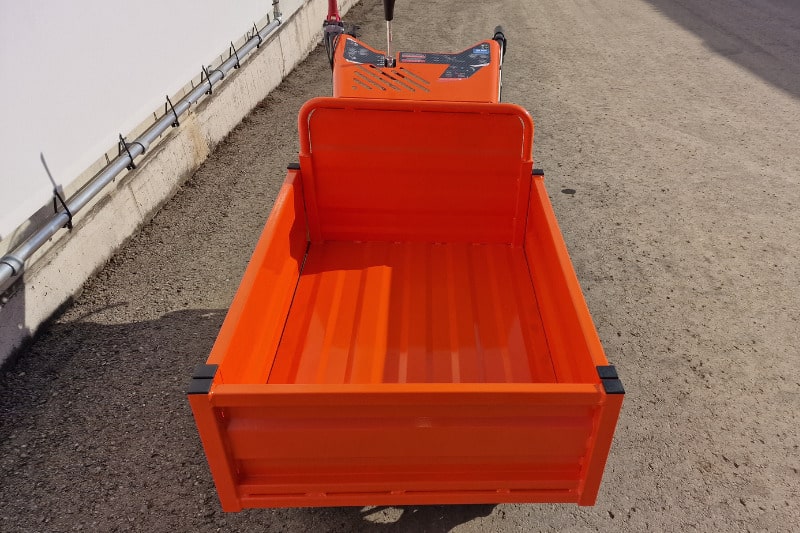 Der C40 Minidumper kann flexibel an Ihre Anforderungen angepasst werden. Die beiden Seitenwände und die Frontwand der landwirtschaftlichen Pritsche können ausgezogen werden, sodass die Breite der Ladefläche des Cormidi C40 variabel zwischen 740 und 1.040 mm gewählt werden kann und die Länge zwischen 1.000 und 1.200 mm. Wenn Sie noch mehr Platz auf der Ladefläche benötigen, klappen Sie die Wände einfach um. Die Kippung des Dumpers ist bequem über einen Hebel auf der linken Seite der Maschine zu steuern und ermöglicht ein schnelles und unkompliziertes Abladen des Transportguts. Somit sind Sie für alle Aufgaben immer bestens gerüstet!