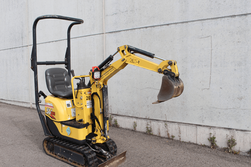 Unser Yanmar SV05 gehört nach Gewicht und Leistung in die 600-kg-Klasse der Minibagger. Seine Abmessungen entsprechen jedoch denen eines Baggers der 300-kg-Klasse. Mit einer Gesamtbreite von nur 690 mm passt er durch so gut wie jeden Türrahmen und selbstverständlich auf die meisten Anhänger und in viele Nutzfahrzeuge. Dank des Anschlagpunktes an der Oberseite des Auslegers kann der SV05 spielend leicht an fast allen Einsatzorten abgesetzt werden. Der minimale Hecküberhang macht den SV05 zur idealen Maschine für Arbeiten dicht an Mauern. Sollte es doch einmal eng werden, lässt sich der Überrollbügel umklappen.