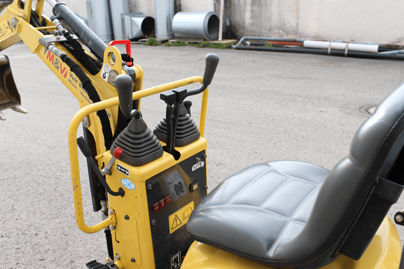 Der Bagger überzeugt mit absolut stattlichen Arbeitskräften von 390 kgf am Löffelstiel und 690 kgf am Löffel selbst. Auch die Grabtiefe von 1200 mm kann sich sehen lassen. Zudem ist die Maschine mit einer Vielzahl von Anbauteilen wie Hydraulikhämmern, Erdbohrern oder Greifern kompatibel. Nach der Montage werden diese durch einen separaten Hydraulikkreis angetrieben. Der Diesel Motor mit zwei Zylindern kann die dafür benötigte Leistung mühelos zur Verfügung stellen.